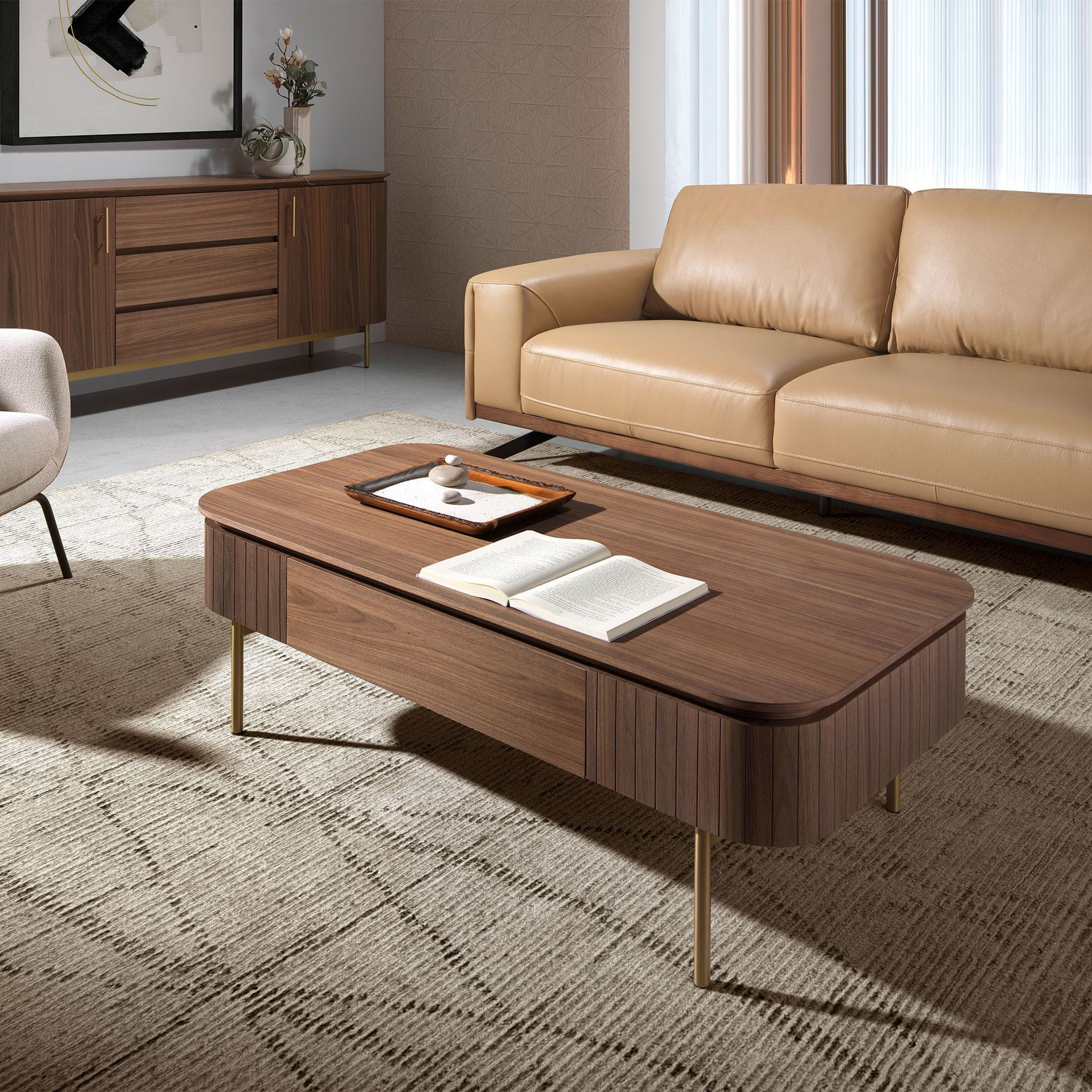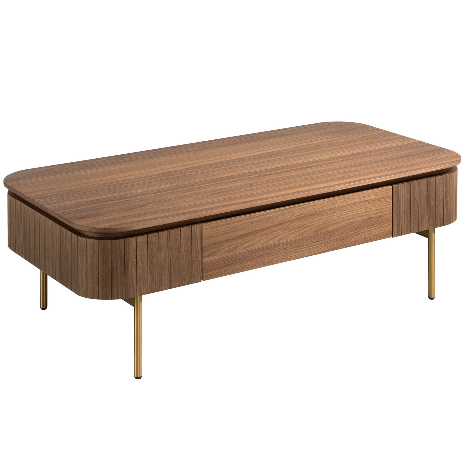 w złotym kolorze zapewnia odrobinę nowoczesności i awangardy, której szukasz w swoim domu. Posiada dużą przestrzeń do przechowywania z 1 szufladą i systemem