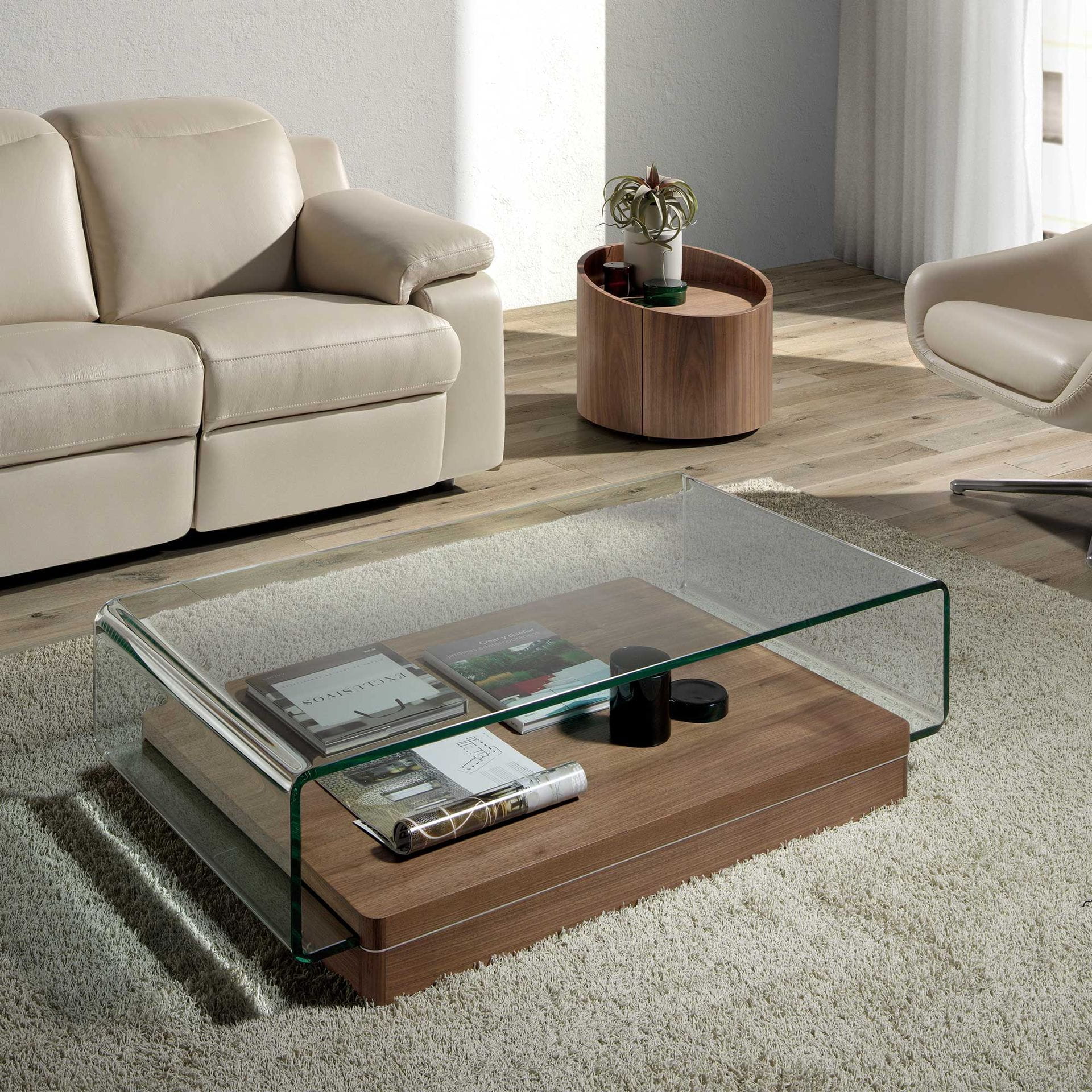 Materiał: szkło hartowane, drewno fornirowane naturalnym orzechem