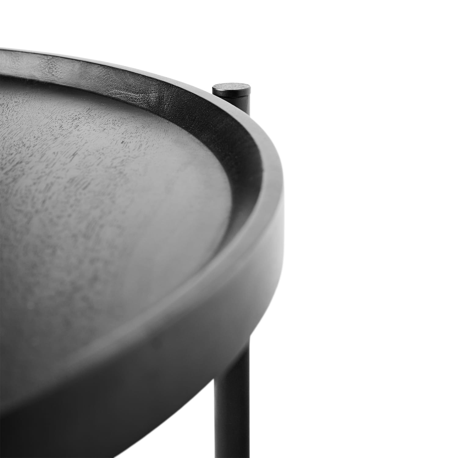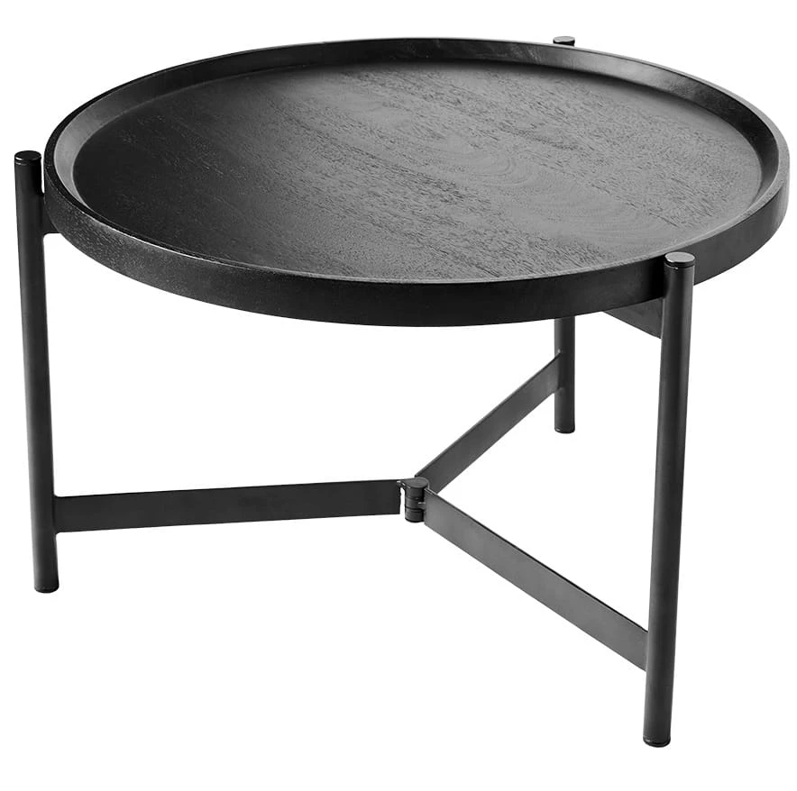 Organiczny okrągły stolik kawowy z pięknej serii Nevada wykonany jest z solidnej czarnej żelaznej ramy i pięknego czarnego drewna mango, który