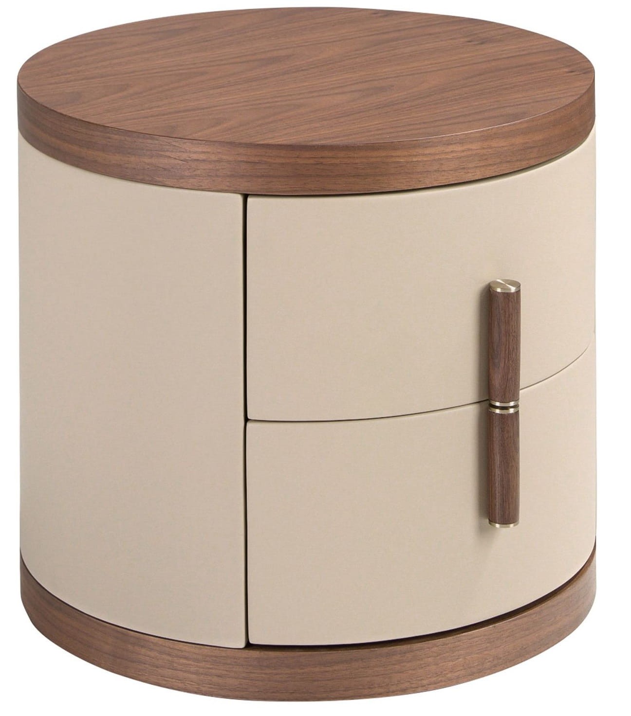 Nocny stolik o łagodnej, zaokrąglonej sylwetce, który wnosi do wnętrza poczucie harmonii i spokoju. Jego forma przypomina niewielką, dopracowaną rzeźbę – zwartą, pełną, a jednocześnie miękką w odbiorze. Górna i dolna krawędź tworzą naturalną ramę, w której osadzono gładkie, eleganckie fronty szuflad. Pośrodku znajduje się smukły uchwyt, który wygląda jak subtelny akcent jubilerski. Dzięki niemu cały mebel nabiera wrażenia precyzji i troski o detal. Szuflady otwierają się lekko, odsłaniając praktyczną przestrzeń, idealną na drobiazgi, które chcesz mieć pod ręką tuż obok łóżka. To stolik, który nie potrzebuje krzykliwych form – jego siłą jest cisza, miękkie linie i wyważone proporcje. Wprowadza do sypialni atmosferę uporządkowania i ciepła, jak dyskretny towarzysz codziennych rytuałów.