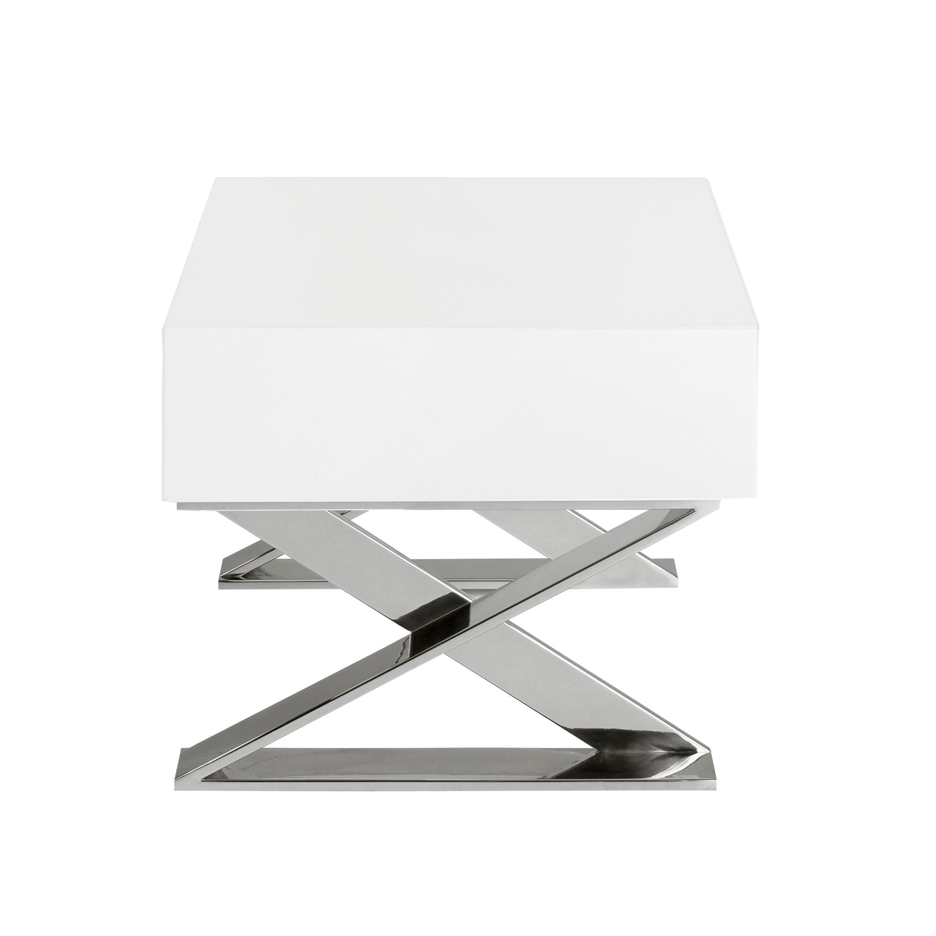 współgrają z chromowaną, metalową podstawą, nadając meblowi aurę lekkości i elegancji. Dwie dyskretne szuflady z gładkimi frontami przechowają niezbędne
