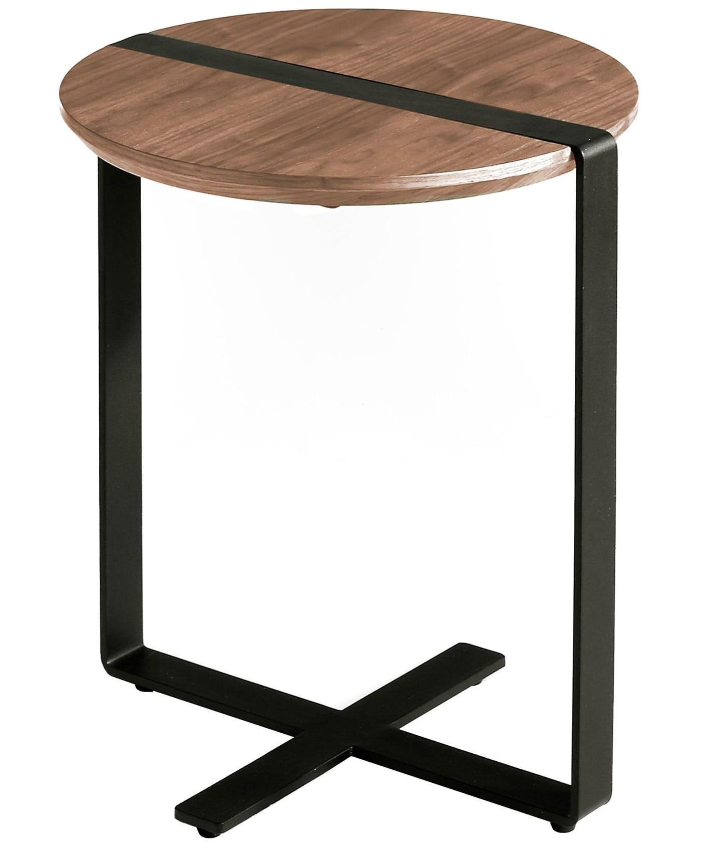 Okrągły stolik boczny o nowoczesnym designie z blatem z drewna fornirowanego naturalnym orzechem i nogami ze stali nierdzewnej malowanymi farbą epoksydową na