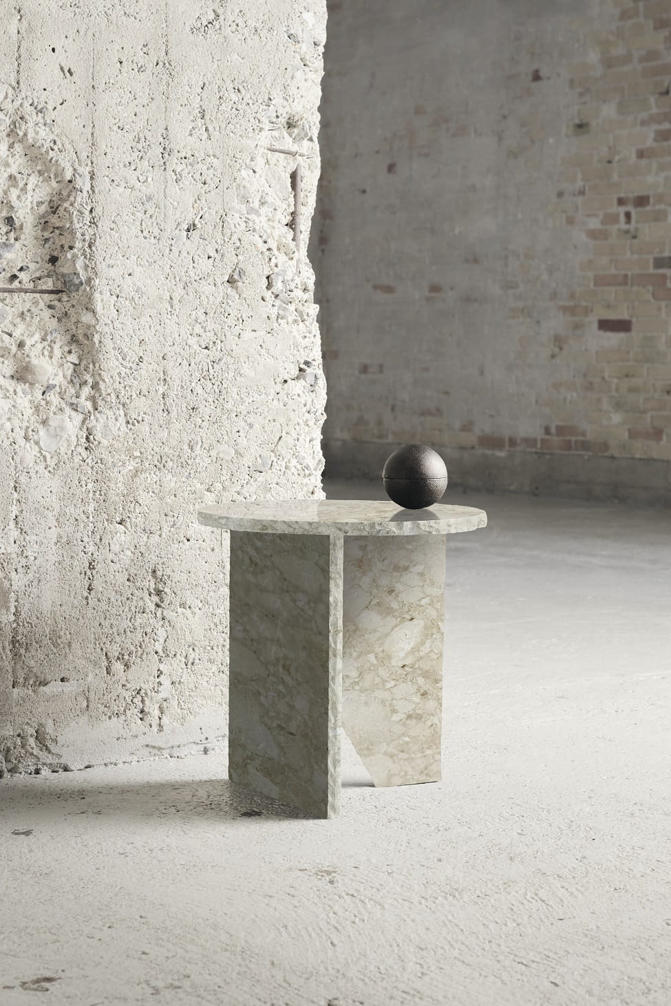 Ten stolik to spotkanie geometrii z naturą – subtelna gra linii i masy, w której kamień staje się formą użytkową. Okrągły blat oparty jest na nieregularnej, asymetrycznej podstawie, która przyciąga uwagę swoją rzeźbiarską lekkością i architektonicznym wyrazem. Wykonany z jasnego kamienia o naturalnym rysunku i wyczuwalnej strukturze, stolik wnosi do wnętrza harmonię i wyciszenie. Idealny jako boczny stolik przy sofie, nocny akcent przy łóżku lub element dekoracyjny w otwartej przestrzeni. To obiekt, który nie tylko służy, ale i opowiada – o formie, o prostocie, o pięknie zaklętym w surowym materiale.
