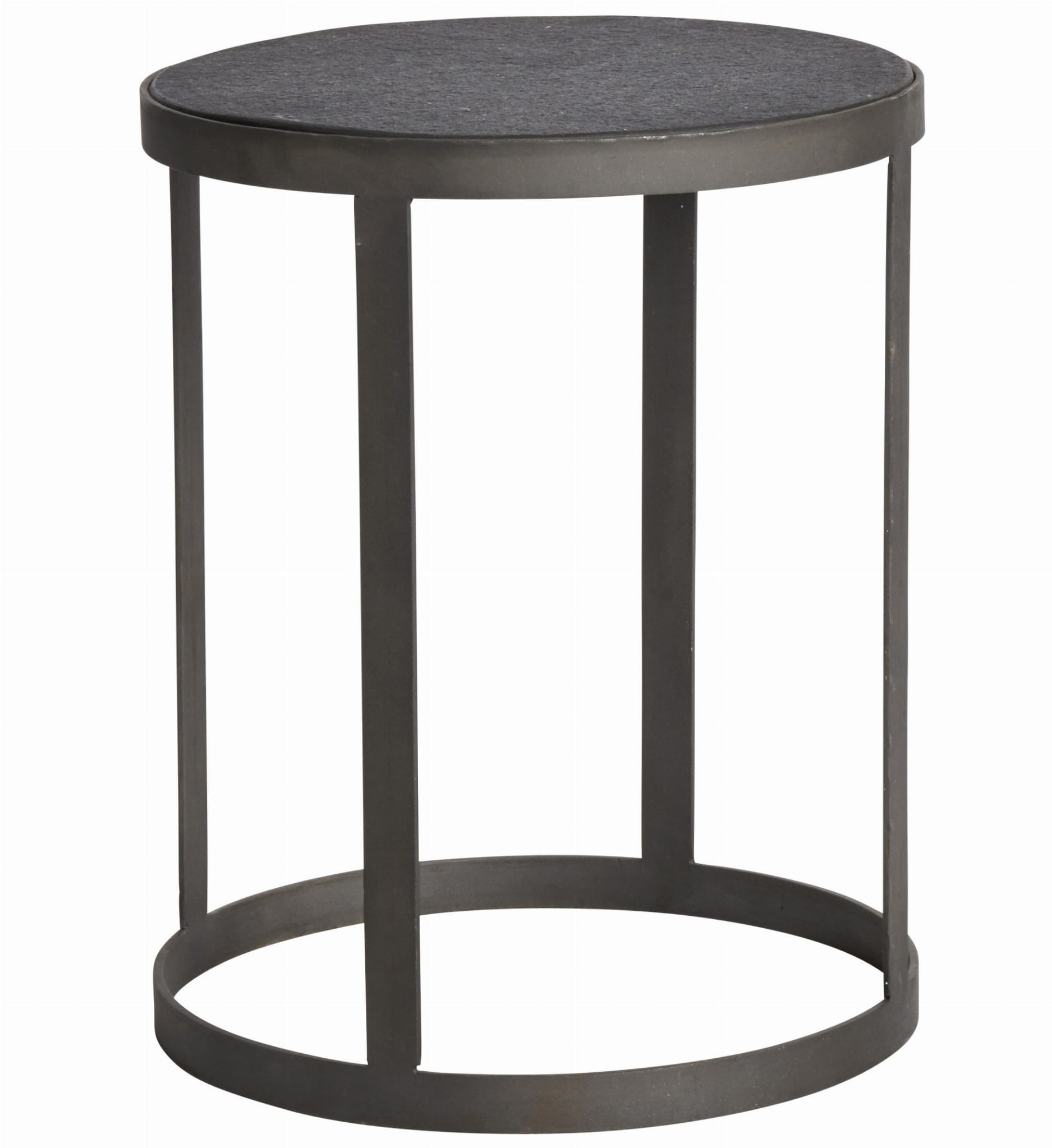 Stolik kawowy z żelazną ramą i kamiennym blatem - elegancki i ponadczasowy design z okrągłą ramą z żelaza malowanego proszkowo.