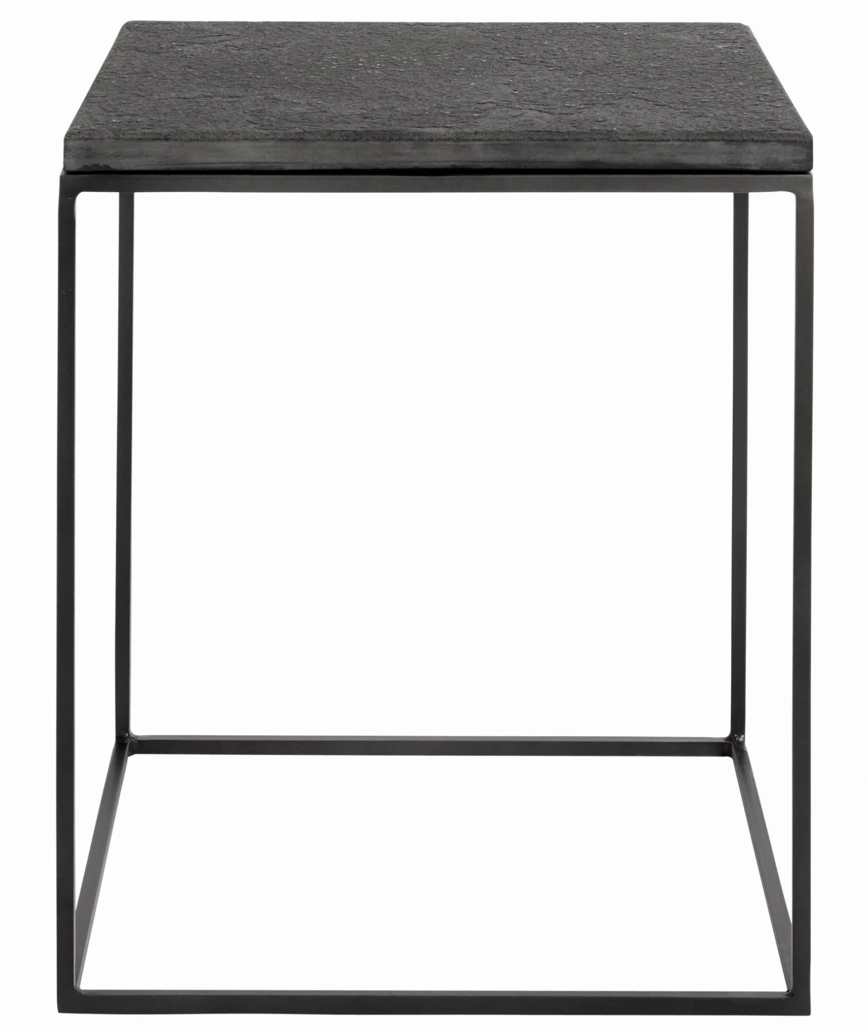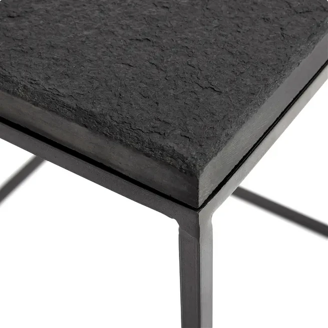 Stolik boczny z żelazną ramą i kamiennym blatem. Bronx ma elegancki i ponadczasowy design z kwadratową ramą z żelaza malowanego proszkowo.