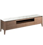 Materiał: drewno fornirowane naturalnym orzechem, szkło porcelanowe imitujące marmur