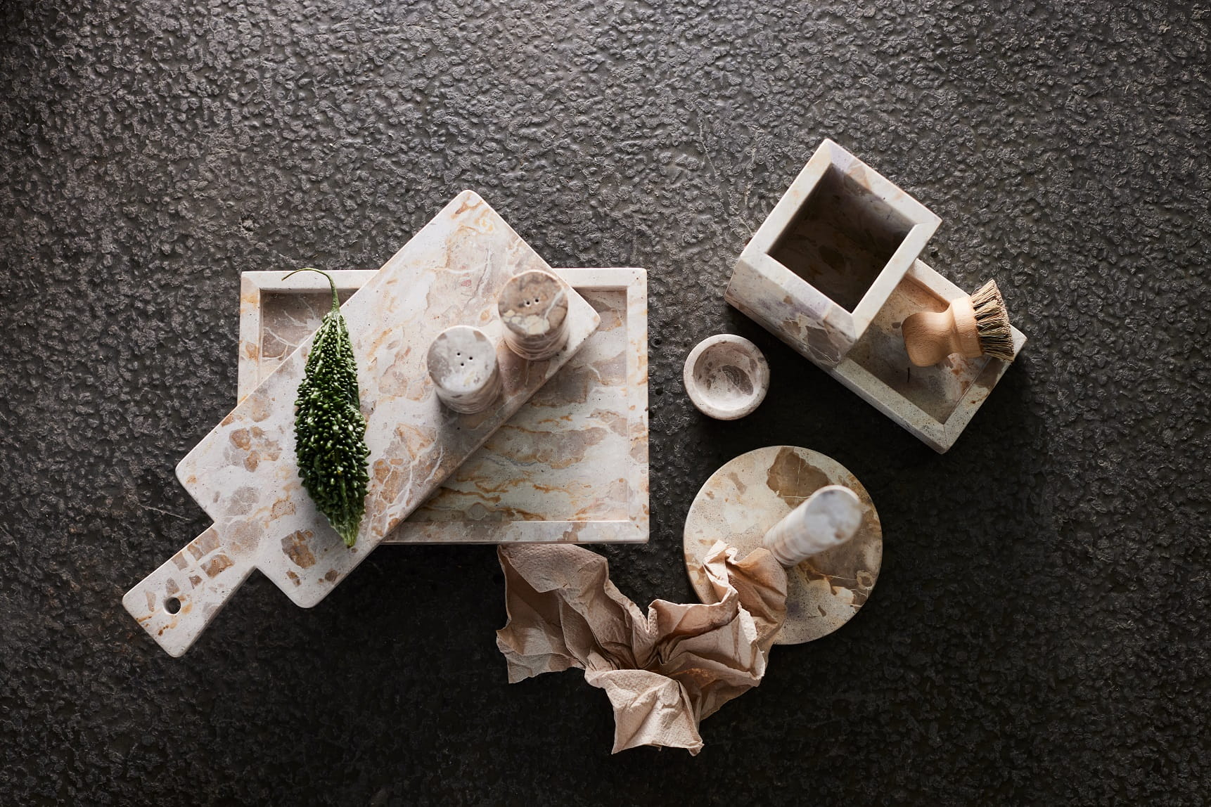 Vita to seria niezwykłych akcesoriów kuchennych, które wzbogacają wystrój mocnym i pięknym kawałkiem natury. Małe marmurowe rzeźby z serii Vita emanują