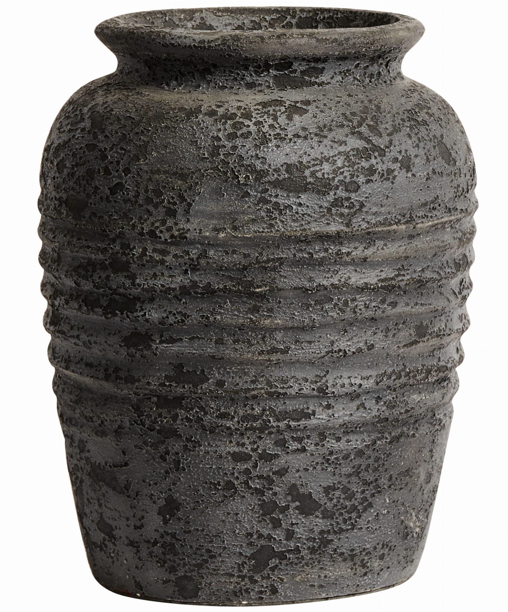przypomina unikalne krajobrazy planet. Specjalny efekt czarnego barwnika nadaje mu niepowtarzalny, głęboki wygląd. Wazon jest wykonany ręcznie z terakoty i należy używać wyłącznie w pomieszczeniach zamkniętych i nie napełniać go wodą. Muubs tworzy przedmioty dla domu, które charakteryzują się kunsztem wykonania i emanują autentycznością. Każdy produkt ma duszę i inną historię: