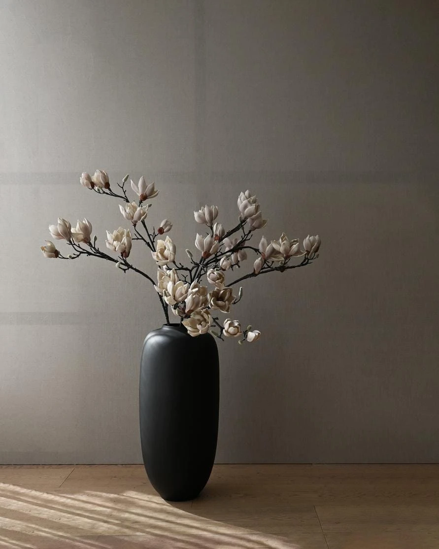 Sunao to przykład czystej, minimalistycznej formy, która emanuje elegancją i spokojem. Smukły, wydłużony kształt przypomina tradycyjne wazony orientalne, ale został przefiltrowany przez nowoczesną wrażliwość – gładkie, pozbawione dekoracji powierzchnie nadają mu ponadczasowy charakter. Matowe wykończenie podkreśla jego rzeźbiarską prostotę, a subtelne zaokrąglenia górnej krawędzi i podstawy wprowadzają miękkość do surowej formy. To wazon, który świetnie sprawdzi się zarówno jako solowy akcent w przestrzeni, jak i w roli eleganckiego tła dla pojedynczej, wyrazistej rośliny – od gałęzi eukaliptusa po minimalistyczną aranżację z suszonych traw. Sunao łączy w sobie japońską filozofię wabi-sabi z nowoczesnym minimalizmem, tworząc obiekt, który jest jednocześnie funkcjonalny i kontemplacyjny. Wnosi do wnętrza atmosferę spokoju, porządku i dyskretnego luksusu.