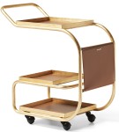 Mobilny barek, który łączy w sobie elegancję złota i funkcjonalność codziennego użytku. Jego miękko zaokrąglona, płynna linia konstrukcji tworzy harmonijną całość, w której forma i użyteczność współistnieją w doskonałej równowadze. Złota rama nadaje mu aurę luksusu, a brązowe elementy ze skóry wprowadzają nutę ciepła i klasycznego wyrafinowania. Projekt zachwyca lekkością i precyzją wykonania – każdy detal został dopracowany tak, by nie tylko przyciągać wzrok, ale i ułatwiać codzienne użytkowanie. Trzy funkcjonalne zdejmowane półki oraz praktyczna kieszeń pozwalają zorganizować przestrzeń z niezwykłą elegancją. Z łatwością przemieszcza się na dyskretnych kółkach, dzięki czemu staje się towarzyszem spotkań, serwując styl tak naturalnie, jak najlepszy trunek. Złoty blask i rzeźbiarska forma czynią z niego nie tylko przedmiot użytkowy, lecz prawdziwy element dekoracyjny – symbol włoskiego kunsztu i elegancji, który wprowadza do wnętrza odrobinę zmysłowego, artystycznego luksusu.