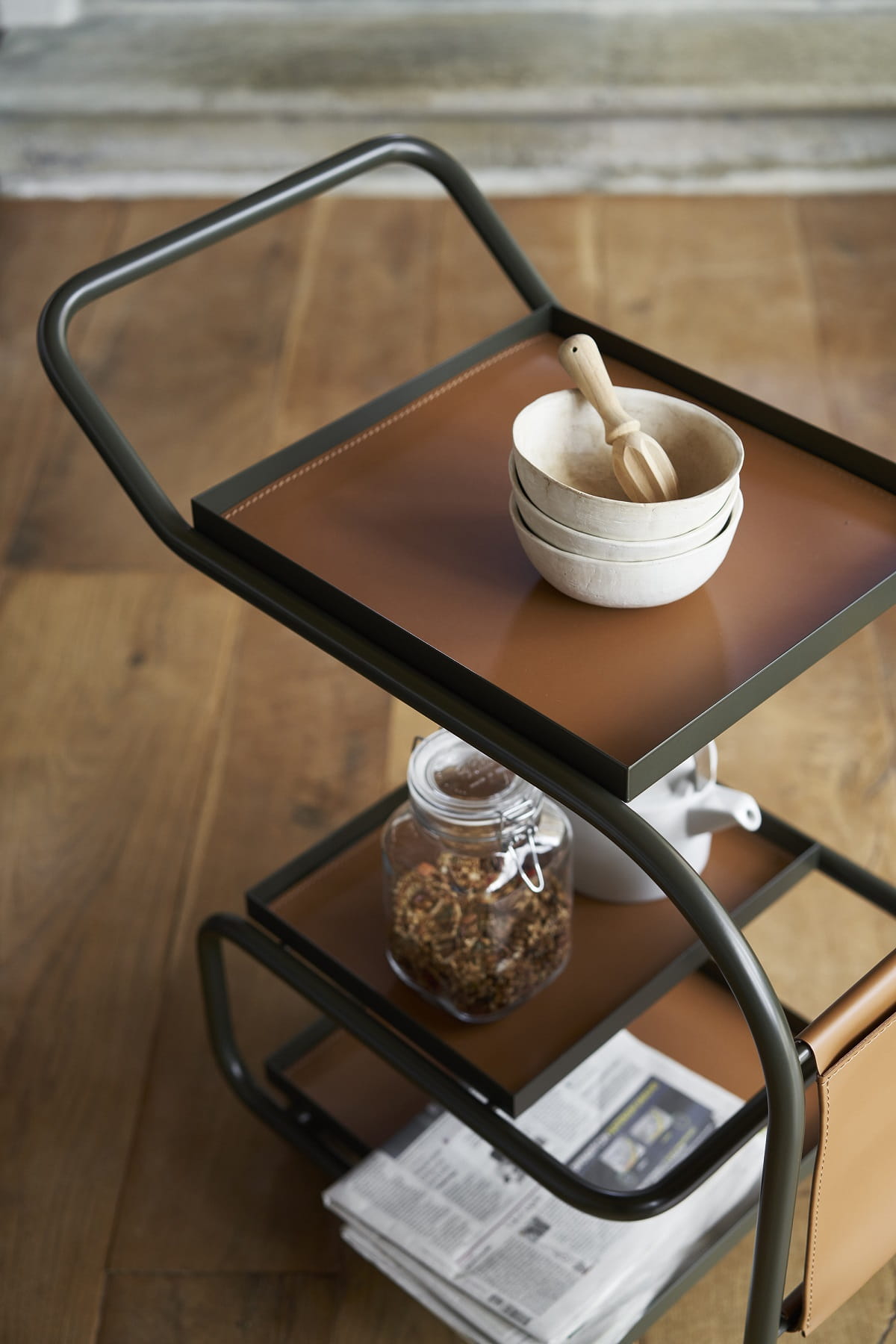 Elegancki barek na kółkach, który zachwyca minimalistyczną formą i subtelną grą kontrastów. Matowa, oliwkowozielona konstrukcja ze stali emanuje nowoczesną surowością, a brązowe, skórzane detale wnoszą ciepło i odrobinę luksusu. Trzy poziomy zdejmowanych półek tworzą praktyczną przestrzeń, pozwalającą serwować napoje lub eksponować ulubione przedmioty w stylowy sposób. Lekko zaokrąglone linie nadają projektowi miękkości, a przemyślana forma sprawia, że wózek porusza się z niezwykłą płynnością, stając się doskonałym towarzyszem spotkań – zarówno tych codziennych, jak i wyjątkowych. Prosta elegancja łączy się tu z funkcjonalnością, tworząc obiekt, który harmonijnie dopełnia każde wnętrze – od współczesnych loftów po klasyczne salony. To nie tylko praktyczny element wyposażenia, lecz wyrafinowany akcent, który wnosi do przestrzeni nutę włoskiego stylu i ponadczasowego wdzięku.