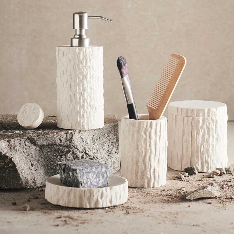 i rustykalną powierzchnię, organiczne kształty i urocze detale o spokojnym odcieniu.